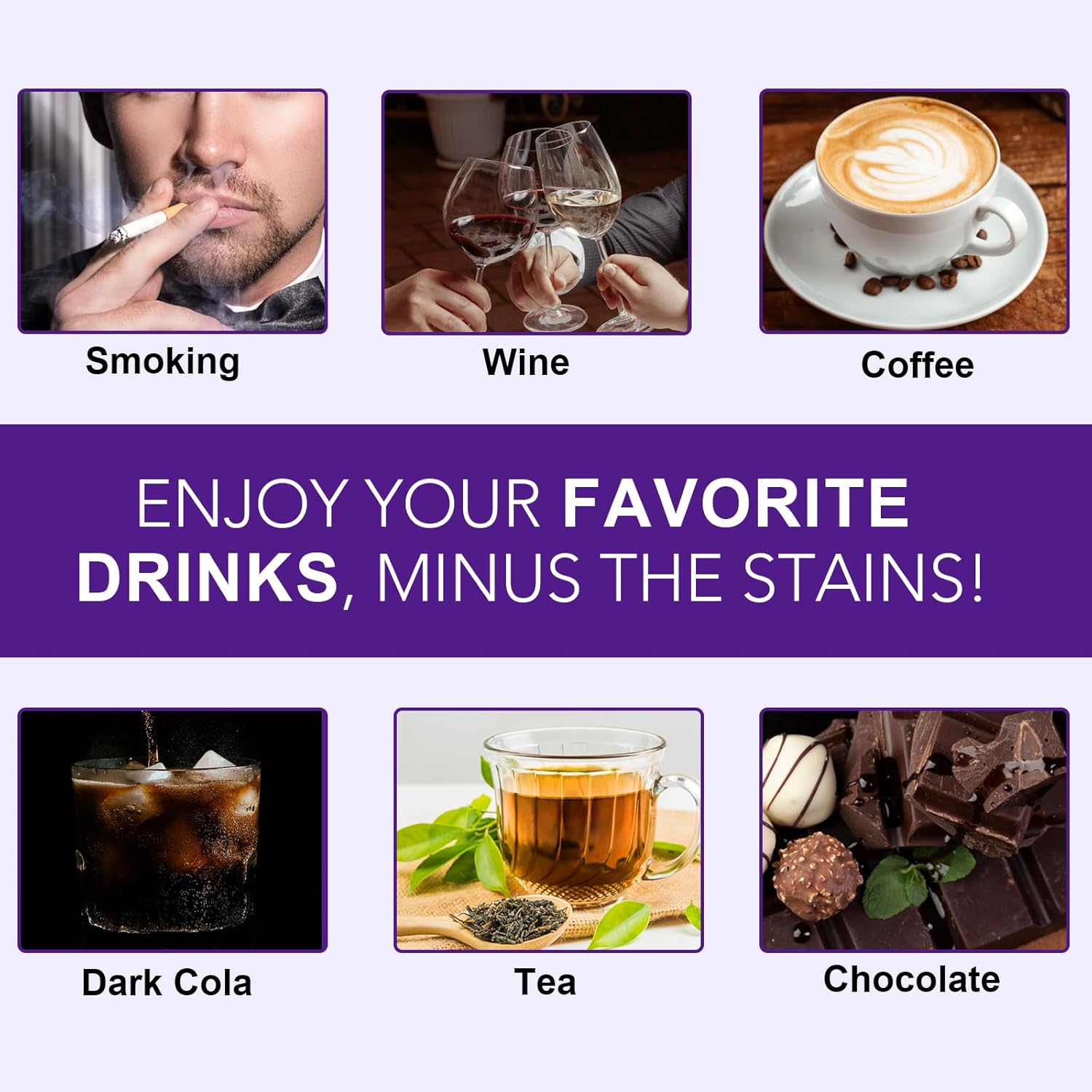 Purple color-correcting technology and PAP+ peroxide-free whitening formula